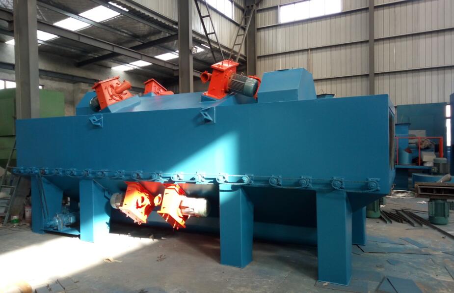鹽城拋丸機廠家為了處理拋丸除銹時產生的大量粉塵,該通過式拋丸機配有高效新型的LT-12脈沖反吹清理濾筒式除塵器一臺,該除塵器體積小、除塵效率高、安裝維修方便,經其凈化后的空氣污染度明顯低于同行業煙塵排放標準。