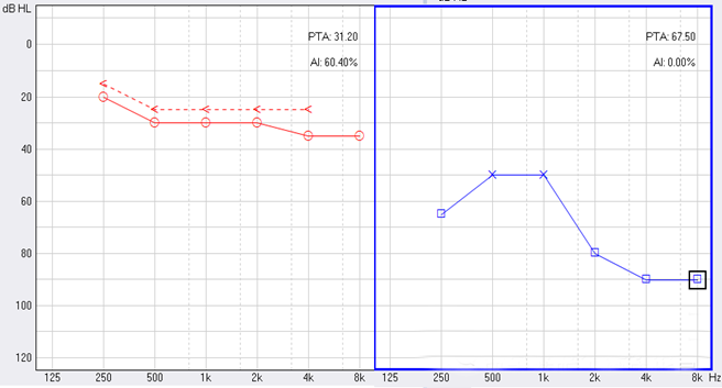 <span style="font-size:16px;"> 純音聽閾測試是聽力學所有測試項目中最基本的一項內容,包括氣導(AC)、骨導(BC)、最舒適閾(MCL)與不舒適閾(UCL)測試。測試結果能夠直接反映患者雙耳的聽力損失程度、性質與動態范圍,還能夠間接反映患者的患病位置、病因與助聽后效果。一般地,整個檢查控制在10分鐘左右,既能全面做完檢查,又不至患者疲勞而影響主觀反應。</span></p><p><span style="font-size:16px;"><br /></span></p><p style="text-align: center;"><span style="font-size:16px;"><img src="/upfiles/201804180138359098.jpg" alt="" /><br /></span></p><p style="text-align: center;"><span style="font-size:16px;"><br /></span></p><p><span style="font-size:16px;"> 純音聽閾測試是最考驗聽力學工作者實際工作能力的一項基本內容:</span></p><p><span style="font-size:16px;"> 1、若患者曾長期暴露于噪聲中,且無其它致耳損因素,很可能在3 kHz或6 kHz出現明顯的下降,聽力曲線呈現“V”字形,所以除了常規的倍頻程頻率外,還要加測這兩個頻率,否則就犧牲了多通道助聽器的意義。</span></p><p><span style="font-size:16px;"> 除了有過噪聲接觸史的患者需要加測半倍頻程外,涉及聲場助聽聽閾評估、賠償等情況都需要加測半倍頻程。</span></p><p><span style="font-size:16px;"> 耳鳴困擾的患者,注意避免與耳鳴聲類似的純音,若還用純音作為刺激聲,患者就會分辨不清,出現假陽性或假陰性。所以,測試者要換成囀音,既有別于耳鳴聲,又具有頻率特異性。</span></p><p><span style="font-size:16px;"> 2、不舒適閾反映患者對大聲的忍耐力,不舒適閾與氣導的差值能顯示患者的動態范圍,指導驗配師調節助聽器的最大輸出。</span></p><p><span style="font-size:16px;"> 不舒適閾測試頻率是否越多越好呢?實際上不是的。測得頻率過多,一會引起患者疲勞或不適,二是沒必要,大多數助聽器的最大輸出是一個整體,不能像調增益和壓縮那樣分通道,所以測多了并無好處,一般測0.5、1、2、4 kHz。</span></p><p><span style="font-size:16px;"> 3、如果兩側聽力有明顯差異,此時就要準備好掩蔽了,分為氣導掩蔽與骨導掩蔽。</span></p><p><span style="font-size:16px;"> (1)氣導掩蔽的判斷有兩個原則,只要符合其中一個原則,就需要重新測差耳氣導。具體做法是:</span></p><p><span style="font-size:16px;"> 測試完雙耳氣導,若發現某一頻率差耳氣導閾值比好耳氣導閾值多40 dB以上就要懷疑有可能是好耳偷聽的,需要給好耳氣導加掩蔽聲;</span></p><p><span style="font-size:16px;"> 測試完雙耳氣導與好耳骨導,若發現某一頻率差耳氣導閾值比好耳骨導閾值多40 dB以上就要懷疑有可能是好耳偷聽的,需要給好耳氣導加掩蔽聲。</span></p><p><span style="font-size:16px;"> 下面為未掩蔽的聽力圖:</span></p><p><span style="font-size:16px;"> </span></p><p><center><img src="/upfiles/201804180139232162.png" width="640" alt="" /></center><center><br /></center></p><p></p><p><span style="font-size:16px;"> 下圖為掩蔽后的左耳真實氣導值:</span></p><p><span style="font-size:16px;"> </span></p><p><center><img src="/upfiles/201804180139383367.png" width="640" alt="" /></center><center><br /></center></p><p></p><p><span style="font-size:16px;"> (2)骨導掩蔽的判斷原則:</span></p><p><span style="font-size:16px;"> 測試完雙耳氣導與好耳骨導,若發現某一頻率差耳氣導閾值比好耳骨導閾值大于等于15 dB就必須予以掩蔽,重測骨導。</span></p><p><span style="font-size:16px;"> 下圖為右耳氣導加掩蔽后左耳骨導的真實值:</span></p><p><span style="font-size:16px;"> </span></p><p><center><img src="/upfiles/201804180140001814.png" width="640" alt="" /></center><center><br /></center></p><p></p><p><span style="font-size:16px;"> 注意:</span></p><p><span style="font-size:16px;"> 掩蔽的規則要按順序適用;</span></p><p><span style="font-size:16px;"> 各頻率根據規則決定是否需要加掩蔽;</span></p><p><span style="font-size:16px;"> 很少需要掩蔽所有頻率,通常氣導掩蔽頻率不應超三個,骨導掩蔽頻率不應超兩個,否則受試者會疲憊不堪。</span></p><p><span style="font-size:16px;"> 醫院測聽的主要目的是診斷和鑒別聽力損失的性質和程度,驗配中心的主要目的是盡可能地幫助患者選擇并調試好助聽器。</span></p><p><span style="font-size:16px;"> 更多詳情請登錄m.chisha.net.cn。</span></p>" />