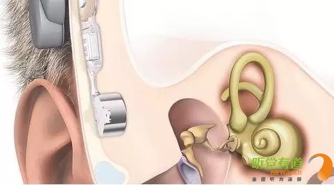 聲音傳入人耳有兩個途徑,一個是空氣傳播,”耳廓——外耳道——鼓膜——中耳——內耳“;另一個是骨頭傳導,”顱骨——內耳“。不管哪種方式,最終都是為了聲音能傳到內耳。骨導助聽器的原理,就是將助聽器放大的聲音不再通過“空氣傳導”,而是借助人本身已有的“骨頭傳導”,將聲音傳至內耳。
