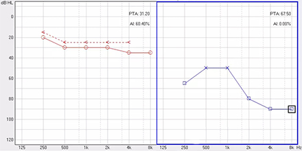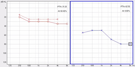 <span style="font-size:16px;"> 純音聽(tīng)閾測(cè)試是聽(tīng)力學(xué)所有測(cè)試項(xiàng)目中最基本的一項(xiàng)內(nèi)容,包括氣導(dǎo)(AC)、骨導(dǎo)(BC)、最舒適閾(MCL)與不舒適閾(UCL)測(cè)試。測(cè)試結(jié)果能夠直接反映患者雙耳的聽(tīng)力損失程度、性質(zhì)與動(dòng)態(tài)范圍,還能夠間接反映患者的患病位置、病因與助聽(tīng)后效果。</span></p><p><span style="font-size:16px;"> 一般地,整個(gè)檢查控制在10分鐘左右,既能全面做完檢查,又不至患者疲憊而影響主觀反應(yīng)。</span></p><p><span style="font-size:16px;"> 純音聽(tīng)閾測(cè)試是最考驗(yàn)聽(tīng)力學(xué)工作者實(shí)際工作能力的一項(xiàng)基本內(nèi)容:</span></p><p><span style="font-size:16px;"> 1、若患者曾長(zhǎng)期暴露于噪聲中,且無(wú)其它致使聽(tīng)損因素,很可能在3 kHz或6 kHz出現(xiàn)明顯的下降,聽(tīng)力曲線(xiàn)呈現(xiàn)“V”字形,所以除了常規(guī)的倍頻程頻率外,還要加測(cè)這兩個(gè)頻率,否則就犧牲了多通道助聽(tīng)器的意義;</span></p><p><span style="font-size:16px;"> 除了有過(guò)噪聲接觸史的患者需要加測(cè)半倍頻程外,涉及聲場(chǎng)助聽(tīng)聽(tīng)閾評(píng)估、賠償?shù)惹闆r都需要加測(cè)半倍頻程。</span></p><p><span style="font-size:16px;"> 耳鳴困擾的患者,注意避免與耳鳴聲類(lèi)似的純音,若還用純音作為刺激聲,患者就會(huì)分辨不清,出現(xiàn)假陽(yáng)性或假陰性。所以,測(cè)試者要換成囀音,既有別于耳鳴聲,又具有頻率特異性。</span></p><p><span style="font-size:16px;"> 2、不舒適閾反映患者對(duì)大聲的忍耐力,不舒適閾與氣導(dǎo)的差值能顯示患者的動(dòng)態(tài)范圍,指導(dǎo)驗(yàn)配師調(diào)節(jié)助聽(tīng)器的最大輸出。</span></p><p><span style="font-size:16px;"> 不舒適閾測(cè)試頻率是否越多越好呢?非也。測(cè)得頻率過(guò)多,一會(huì)引起患者疲勞或不適,二是沒(méi)必要,大多數(shù)助聽(tīng)器的最大輸出是一個(gè)整體,不能像調(diào)增益和壓縮那樣分通道,所以測(cè)多了并無(wú)好處,一般測(cè)0.5、1、2、4 kHz。</span></p><p><span style="font-size:16px;"> 3、如果兩側(cè)聽(tīng)力有明顯差異,此時(shí)就要準(zhǔn)備好掩蔽了,分為氣導(dǎo)掩蔽與骨導(dǎo)掩蔽。</span></p><p><span style="font-size:16px;"> (1)氣導(dǎo)掩蔽的判斷有兩個(gè)原則,只要符合其中一個(gè)原則,就需要重新測(cè)差耳氣導(dǎo)。具體做法是:</span></p><p><span style="font-size:16px;"> 測(cè)試完雙耳氣導(dǎo),若發(fā)現(xiàn)某一頻率差耳氣導(dǎo)閾值比好耳氣導(dǎo)閾值多40 dB以上就要懷疑有可能是好耳偷聽(tīng)的,需要給好耳氣導(dǎo)加掩蔽聲;</span></p><p><span style="font-size:16px;"> 測(cè)試完雙耳氣導(dǎo)與好耳骨導(dǎo),若發(fā)現(xiàn)某一頻率差耳氣導(dǎo)閾值比好耳骨導(dǎo)閾值多40 dB以上就要懷疑有可能是好耳偷聽(tīng)的,需要給好耳氣導(dǎo)加掩蔽聲。</span></p><p><span style="font-size:16px;"> 下面為未掩蔽的聽(tīng)力圖:</span></p><center><span style="font-size:16px;"><img alt="" src="/upfiles/201809180234471614.png" width="440" height="220" /></span></center><p></p><p><span style="font-size:16px;"> 下圖為掩蔽后的左耳真實(shí)氣導(dǎo)值:</span></p><center><span style="font-size:16px;"><img alt="" src="/upfiles/201809180234541797.png" width="440" height="220" /></span></center><p></p><p><span style="font-size:16px;"> (2)骨導(dǎo)掩蔽的判斷原則:</span></p><p><span style="font-size:16px;"> 測(cè)試完雙耳氣導(dǎo)與好耳骨導(dǎo),若發(fā)現(xiàn)某一頻率差耳氣導(dǎo)閾值比好耳骨導(dǎo)閾值大于等于15 dB就必須予以掩蔽,重測(cè)骨導(dǎo)。下圖為右耳氣導(dǎo)加掩蔽后左耳骨導(dǎo)的真實(shí)值:</span></p><center><span style="font-size:16px;"><img alt="" src="/upfiles/201809180235004928.png" width="440" height="220" /></span></center><p></p><p><span style="font-size:16px;"> 注意:</span></p><p><span style="font-size:16px;"> 1)掩蔽的規(guī)則要按順序適用;</span></p><p><span style="font-size:16px;"> 2)各頻率根據(jù)規(guī)則決定是否需要加掩蔽;</span></p><p><span style="font-size:16px;"> 3)很少需要掩蔽所有頻率,通常氣導(dǎo)掩蔽頻率不應(yīng)超三個(gè),骨導(dǎo)掩蔽頻率不應(yīng)超兩個(gè),否則受試者會(huì)疲憊不堪。</span></p><p><span style="font-size:16px;"> 醫(yī)院測(cè)聽(tīng)的主要目的是診斷和鑒別聽(tīng)力損失的性質(zhì)和程度,驗(yàn)配中心的主要目的是盡可能地幫助患者選擇并調(diào)試好助聽(tīng)器。</span></p><p><span style="font-size:16px;"> 更多詳情請(qǐng)登錄m.chisha.net.cn</span></p>" />