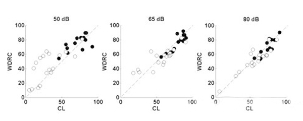 <span style="font-size:16px;"> 重度聽力損失是500Hz、1000Hz、2000Hz和4000Hz平均聽閾在61dB HL和80dB HL之間的聽力損失。重度聽損患者更趨向于:</span></p><p><span style="font-size:16px;"> (1)聽力損失時間較久;</span></p><p><span style="font-size:16px;"> (2)有助聽器佩戴史;</span></p><p><span style="font-size:16px;"> (3)言語分辨率較低;</span></p><p><span style="font-size:16px;"> (4)噪音環(huán)境中交流困難。</span></p><p><span style="font-size:16px;"> 1、重度聽力損失的特點(diǎn)</span></p><p><span style="font-size:16px;"> 60dB HL是單純外毛細(xì)胞損傷和內(nèi)外毛細(xì)胞共同損傷的分界點(diǎn),內(nèi)毛細(xì)胞受損預(yù)示著重度聽力損失,這類患者的頻率選擇能力降低,在相關(guān)頻率范圍內(nèi)難以分辨兩種聲音。這是噪聲環(huán)境下交流困難的主要原因。</span></p><p><span style="font-size:16px;"> 簡單來說,頻率選擇能力越低,自身降噪能力越差,噪聲下識別信號的能力也就越差。</span></p><center><span style="font-size:16px;"><img alt="" src="/upfiles/20181016012659501.png" width="440" height="250" /></span></center><p></p><p><span style="font-size:16px;"> 2、選擇合適的放大策略</span></p><p><span style="font-size:16px;"> 反饋抑制:這項技術(shù)在傳統(tǒng)方法的基礎(chǔ)上有更好的減少嘯叫的效果。</span></p><p><span style="font-size:16px;"> 指向性麥克風(fēng):有指向性功能的助聽器可以明顯提高信噪比(SNR)。現(xiàn)在自適應(yīng)指向性麥克風(fēng)廣泛地應(yīng)用于大功率耳背機(jī)中。</span></p><p><span style="font-size:16px;"> 對于噪聲下言語交流困難的重度聽力損失患者,選配帶有指向性麥克風(fēng)的助聽器效果顯著。</span></p><p><span style="font-size:16px;"> 聽力學(xué)家對重度聽損人士的指向性麥克風(fēng)做過獲益度測試,發(fā)現(xiàn)平均言語識別能力提升了14%。</span></p><p><span style="font-size:16px;"> 重度聽損患者使用指向性功能時必須保證一定低頻增益,否則他們會感覺聲音不夠洪亮。</span></p><center><span style="font-size:16px;"><img alt="" src="/upfiles/201810160127134771.png" width="440" height="250" /></span></center><p></p><p><span style="font-size:16px;"> 寬動態(tài)范圍壓縮線路(WDRC):</span></p><p><span style="font-size:16px;"> 如下圖,白點(diǎn)是重度聽力損失患者的輔音識別得分,黑點(diǎn)是輕度至中度聽損患者的輔音識別得分;每位受試者佩戴四通道的耳背機(jī),驗配采用NAL公式;測試言語聲強(qiáng)度分別為50dB SPL、65dB SPL和80dB SPL;比較WDRC和線性輸出壓縮限制(CL)兩種線路的得分。</span></p><center><span style="font-size:16px;"><img alt="" src="/upfiles/201810160127198326.png" width="600" height="240" /></span></center><p></p><p><span style="font-size:16px;"> 等分位于對角線附近代表兩種處理方式效果相似,得分位于對角線上方表示W(wǎng)DRC線路效果更好,而下方則表示CL線路效果更好。</span></p><p><span style="font-size:16px;"> 對重度聽損患者來說,輸入輕聲和中等聲時WDRC線路比CL線路效果更好;輸入響聲時兩種線路的區(qū)別并不大。所以使用WDRC線路可以獲得比CL線路更高的言語識別率。</span></p><p><span style="font-size:16px;"> 壓縮速度:壓縮越深可聽度越高,因為患者可以聽到更寬的聲音響度范圍。</span></p><p><span style="font-size:16px;"> 快反應(yīng)壓縮(起效和釋放時間很短)可以降低元音(響度較大)增益并提高輔音(響度較小)增益,從而提高可聽度。</span></p><p><span style="font-size:16px;"> 所以理論上來講,對于重度聽損人士,使用多通道助聽器、低壓縮拐點(diǎn)、高壓縮比、音節(jié)壓縮,可以最大程度提高驗配效果。</span></p><center><span style="font-size:16px;"><img alt="" src="/upfiles/201810160127304305.png" width="600" height="500" /></span></center><p></p><p><span style="font-size:16px;"> 但壓縮越深就意味著有聲音失真越大,音節(jié)壓縮丟失了重要言語信息,導(dǎo)致輔音分辨不清。若要保留這些信息,則需要慢反應(yīng)壓縮(起效和釋放時間較長)。</span></p><p><span style="font-size:16px;"> 最好的情況是在提高可聽度的同時還保證信號不失真,但目前很難實現(xiàn),找到二者的平衡點(diǎn)是最佳的選配方案。</span></p><center><span style="font-size:16px;"><img alt="" src="/upfiles/20181016012736476.png" width="440" height="250" /></span></center><p></p><p><span style="font-size:16px;"> 上圖為一組重度聽力損失患者選配快速和慢速WDRC線路的言語識別率對比。</span></p><p><span style="font-size:16px;"> 在輸入聲級為50和65 dB SPL時,快反應(yīng)壓縮線路的受試者得分明顯比慢反應(yīng)壓縮線路的受試者差;在80 dB SPL輸入聲級下則并無明顯差別。</span></p><p><span style="font-size:16px;"> 對輕度和中度聽力損失患者來說,無論何種輸入聲級,兩種壓縮方式的得分都沒有明顯差別(并未在圖中顯示)。</span></p><p><span style="font-size:16px;"> 對極重度聽力損失患者來說,可聽度比其他任何信息都重要,快反應(yīng)壓縮線路效果比慢反應(yīng)壓縮線路更好。</span></p><p><span style="font-size:16px;"> 綜上所述,在使用多通道WDRC線路助聽器前提下,一定程度的可聽度是必須的,在這個基礎(chǔ)上要追求最低的失真(最低的壓縮比以及最慢的壓縮),才能達(dá)到最好的驗配效果。</span></p><p><span style="font-size:16px;"> 我們經(jīng)常會遇到重度聽力損失患者,應(yīng)該找到適合他們的驗配策略并提供心理和生理咨詢。</span></p><p><span style="font-size:16px;"> 助聽器選配的效果受到外周