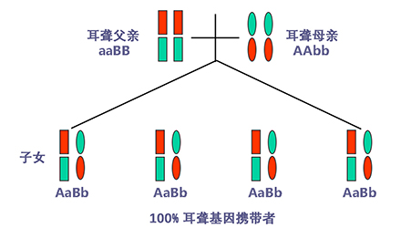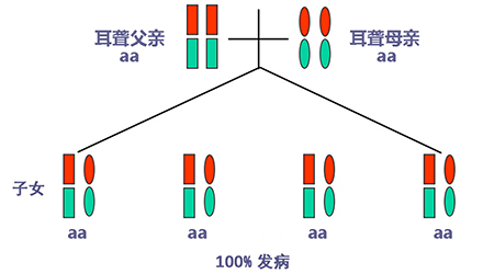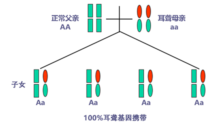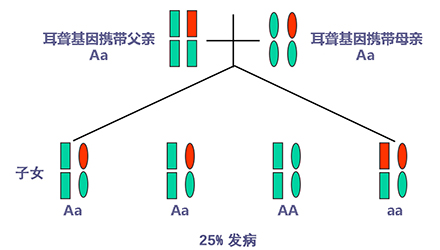 聽力正常有時只是“表象”,如果骨子里“隱藏”著聽損致病基因,這代“躲”過了聽力損失,可是下一代、下下一代呢?</p><p> 生活中我們會發(fā)現(xiàn),有一些父母雙方都有正常的聽力,但生出的孩子卻患有遺傳性聽力損失,很多人都會感到詫異,甚至父母本身都無法相信自己竟然生出了弱聽的孩子。</p><p> 其實,此類“怪異事情”的發(fā)生離不開基因的作用,這與遺傳性聽損中的常染色體隱性遺傳密切相關。</p><p> 今天就帶大家看看:常染色體隱性遺傳性聽損是怎么一回事?它有什么特點呢?基因又是如何“從中作祟”的呢?</p><p> 先來說說隱性遺傳為什么“隱藏”在骨子里</p><p> 俗話說,龍生龍,鳳生鳳,老鼠的兒子會打洞。這些表現(xiàn)都是基因所賦予的、與生俱來的,我們稱這種表現(xiàn)是顯性的。但有時,即便你骨子里帶著那份基因,可是沒有表現(xiàn)出來。</p><p> 例如上文說到的,父母雙方聽力正常,但其實他們仍有聽損致病基因,這種表現(xiàn)就叫隱性。</p><p> </p><center><img alt="" src="/upfiles/201904260337585875.png" width="440" height="250" /></center><p></p><p> 接著說說常染色體隱性遺傳性聽損“隱藏”的聽力損失</p><p> 常染色體隱性遺傳性聽損是指與聽力損失表型相關的基因位于常染色體上,是最常見的遺傳性聽損,約占80%。 一般而言,這類聽力損失多指非綜合征型聽損,即聽力下降是其唯一臨床表現(xiàn),大多數(shù)患者癥狀早發(fā)且程度較重。</p><p> 這類聽力損失只有在來自父母的等位基因均攜帶致病突變時才出現(xiàn)聽力下降。</p><p> </p><center><img alt="" src="/upfiles/201904260338048765.png" width="440" height="250" /></center><p></p><p> 根據(jù)人類基因組命名委員會的規(guī)則,以DFNB來表示常染色體隱性遺傳性聽損。</p><p> 第一個致病基因座位表述為DFNB1,此后依據(jù)基因座發(fā)現(xiàn)及獲得命名的時間順序,依次命名為DFNB2,DFNB3……</p><p> 目前,常染色體隱性遺傳的基因座位一共有86個。其中DFNB1和DFNB18中各有兩個聽損致病基因,其他為各一個聽損致病基因。</p><p> 例如,GJB2基因是中國人最常見的聽損致病基因,在兒童非綜合征聽損中占40%,其基因座位為DFNB1。</p><p> </p><center><img alt="" src="/upfiles/201904260338091241.png" width="440" height="250" /></center><p></p><p> 聽損隱性遺傳表現(xiàn)各式各樣不是想“躲”就能“躲”</p><p> 涉及到不同聽損致病基因的共同作用,常染色體隱性遺傳方式有很多,下面就以最常見且最簡單的方式進行舉例分析:</p><p> 1. 父母雙方聽力正常,都為聽損致病等位基因的攜帶者(Aa),則子女中有25%的概率患有聽力損失,50%的概率為聽損致病基因攜帶者。</p><p> </p><center><img alt="" src="/upfiles/201904260338147337.png" width="440" height="250" /></center><p></p><p> 2. 父母雙方都患有聽力損失,且聽損致病基因為等位基因(aa),則子女基因都為(aa),100%患有聽力損失,也就是代代相傳。</p><p> </p><center><img alt="" src="/upfiles/20190426033818859.png" width="440" height="250" /></center><p></p><p> 3. 父母一方為聽力正常者(AA),另一方患有聽力損失(aa),則子女基因都為(Aa),即聽力正常的聽損致病基因攜帶者。</p><p> </p><center><img alt="" src="/upfiles/201904260338249987.png" width="440" height="250" /></center><p></p><p> 4. 父母一方為聽力正常的聽損致病基因攜帶者(Aa),另一方患有聽力損失(aa),則子女基因50%的概率為聽力正常但攜帶聽損致病基因(Aa),50%的概率患有聽力損失(aa)。</p><p> </p><center><img alt="" src="/upfiles/201904260338297827.png" width="440" height="250" /></center><p></p><p> 5. 父母雙方都有聽力損失,但非等位基因,父親為(aaBB),母親為(AAbb),則子女基因都為AaBb,即100%的概率聽力正常。</p><p> </p><center><img alt="" src="/upfiles/201904260338427827.png" width="440" height="250" /></center><p></p><p> 常染色體隱性聽損遺傳的特征下一代“躲”得過嗎?根據(jù)如上分析,我們可以總結常染色體隱性遺傳性聽損具有以下特征:</p><p> 1. 聽損致病基因位于常染色體,因而聽損致病基因的遺傳與性別無關,即男、女性的患病機會均等;</p><p> 2. 系譜中通常看不到連續(xù)傳遞現(xiàn)象,往往是散發(fā)病例,但同胞中可有多人患病;</p><p> 3. 患者的雙親一般不患病,但都是致病基因的攜帶者;</p><p> 4. 患者的同胞有1/4的風險患病,患者表型正常的同胞中有2/3的概率為攜帶者;</p><p> 5. 患者的后代一般不發(fā)病,但一定是聽損致病基因攜帶者;</p><p> 6. 近親婚配時,子女的發(fā)病風險顯著提高,因為共同的祖先可能傳遞給他們共同的突變基因。</p><p> </p><center><img alt="" src="/upfiles/201904260338494272.png" width="440" height="250" /></center><p></p><p> 可見,遺傳性聽損有多種多樣的表現(xiàn)形式,需要細分遺傳模式。 父母的不同表型和不同聽損致病基因決定了其后代各種各樣的表現(xiàn)形式。</p><p> 正常聽力的父母可能生出弱聽的孩子,哪怕是同有聽損的父母也有可能生出聽力正常的孩子。</p><p> 隱性基因表現(xiàn)各異怎么辦?唯有基因檢測明確</p><p> 所以,要想知道自己及其配偶是否攜帶聽損致病基因,是否會遺傳給后代,后代的遺傳概率有多大,如何規(guī)避部分致病基因導致的聽力下降......唯有通過遺傳性聽障基因檢測。</p><p> 才能幫助我們更好了解各種可能的表現(xiàn)形式,進而準確分析遺傳模式,推斷后代可能患有聽損的概率,以規(guī)避生育風險及日后的精神和經濟負擔。</p><p> 畢竟,隱性遺傳雖可以讓我們