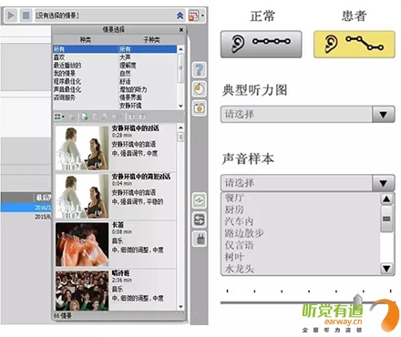 比如,在聲音樣本中選擇“餐廳”,并選擇“正常”,可聽到正常聽力者在“餐廳”環境中聽到的聲音;若選擇“患者”,則可使聽力正常者聽到聽力損失者聽到的聲音,令聽力正常者親身體驗他們所處的“模糊世界”。