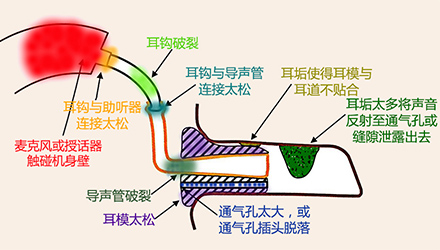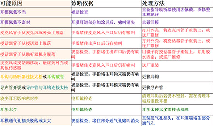 <span style="font-size:16px;"> 嘯叫,一直是引起助聽器使用者不滿的一大原因,也是驗(yàn)配師在助聽器調(diào)試時(shí)最為棘手的難題之一。</span></p><p><span style="font-size:16px;"> 通常,嘯叫分內(nèi)部嘯叫和外部嘯叫。內(nèi)部嘯叫常由內(nèi)部零件故障引起,而外部嘯叫則是與助聽器外殼或耳模,助聽器調(diào)試等有關(guān)。</span></p><p style="text-align: center;"><span style="font-size:16px;"><img src="/upfiles/201810100140556872.jpg" alt="" /><br /></span></p><p><span style="font-size:16px;"> 我們常常說的外部嘯叫是在聲音被麥克風(fēng)拾取、放大器放大、授話器轉(zhuǎn)換后,又從各種縫隙(如外殼與耳道的縫隙、通氣孔)中“跑”出來,又“跑”進(jìn)去,如此反復(fù)多次,使得聲音越來越大,產(chǎn)生“吱吱吱”的惱人嘯叫。</span></p><p><span style="font-size:16px;"> 以助聽器的角度來看,shou話器把聲音授給耳朵聽,當(dāng)用“授”,即授話器。</span></p><p><span style="font-size:16px;"> 接下來將分別針對定制式(ITE/ITC/CIC)和耳背式(BTE)助聽器的嘯叫問題,跟著產(chǎn)生嘯叫的路徑,一一“攻破”嘯叫難題。注意,這里不說助聽器調(diào)試,只尋嘯叫路徑,并“堵死”嘯叫“通路”,讓進(jìn)入助聽器的聲音“不走回頭路”。</span></p><p><span style="font-size:16px;"> 1、ITE/ITC/CIC助聽器</span></p><p><span style="font-size:16px;"> 先來看看ITE/ITC/CIC助聽器可能發(fā)生嘯叫的路徑。</span></p><p><span style="font-size:16px;"> 圖1里是一個(gè)定制式助聽器佩戴于外耳道內(nèi)的示意圖,各種顏色的字和相應(yīng)顏色的標(biāo)記展示了發(fā)生嘯叫的各種情況。</span></p><center><span style="font-size:16px;"><img alt="" src="/upfiles/201810100142273990.png" width="440" height="250" /></span></center><p></p><p style="text-align: center;"><span style="font-size:16px;">圖1:ITE/ITC/CIC助聽器發(fā)生嘯叫的路徑一覽</span></p><p style="text-align: left;"><span style="font-size:16px;"> 例如,紅色表示“麥克風(fēng)管子脫落”,這屬于助聽器內(nèi)部零件脫落、故障,為內(nèi)部嘯叫。</span></p><p><span style="font-size:16px;"> 橙色表示“外殼佩戴太松”,這屬于外殼不密封的聲音泄露,為外部嘯叫。</span></p><p><span style="font-size:16px;"> 那如何檢查出是這些原因,并對問題進(jìn)行相應(yīng)處理呢?請對照表1中的“診斷依據(jù)”和“處理方法”查看。</span></p><center><span style="font-size:16px;"><img alt="" src="/upfiles/201810100142337254.png" width="520" height="250" /></span></center><p></p><p style="text-align: center;"><span style="font-size:16px;">表1:ITE/ITC/CIC助聽器產(chǎn)生嘯叫的可能原因及對應(yīng)的診斷依據(jù)、處理方法</span></p><p><span style="font-size:16px;"> 例如,當(dāng)發(fā)現(xiàn)“手指堵住麥克風(fēng)入聲口后仍有嘯叫”,可推斷原因是“麥克風(fēng)管子從麥克風(fēng)或外殼上脫落”或“麥克風(fēng)或授話器移動(dòng),觸碰到外殼或其他傳感器”,這時(shí)的處理方法是“送廠維修”。</span></p><p><span style="font-size:16px;"> 2、BTE助聽器</span></p><p><span style="font-size:16px;"> 學(xué)會(huì)了看ITE/ITC/CIC助聽器的一圖一表,再來看看BTE助聽器的嘯叫路徑圖(圖2),以及表2中羅列的可能原因、診斷依據(jù)和處理方法,相信看起來更加輕松、直觀、一目了然。</span></p><center><span style="font-size:16px;"><img alt="" src="/upfiles/201810100142383483.png" width="440" height="250" /></span></center><p></p><p style="text-align: center;"><span style="font-size:16px;">圖2:BTE助聽器發(fā)生嘯叫的路徑一覽</span></p><center><span style="font-size:16px;"><img alt="" src="/upfiles/201810100142449945.png" width="462" height="273" /></span></center><p></p><p style="text-align: center;"><span style="font-size:16px;">表2:BTE助聽器產(chǎn)生嘯叫的可能原因及對應(yīng)的診斷依據(jù)、處理方法</span></p><p><span style="font-size:16px;"> 更多詳情請登錄m.chisha.net.cn。</span></p>" />