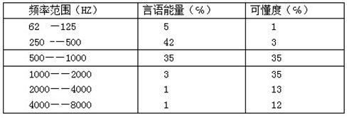 從表中看出,如果將500HZ以下的能量都去掉,言語可懂度損失僅4%,損失近50%的能量,如果將1000HZ以上的能量都去掉,損失5%的能量,但是言語可懂度損失60%。