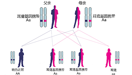 研究表明,約有60%的聽損與遺傳有關(guān),目前已發(fā)現(xiàn)的聽損相關(guān)基因近300個(gè)。在正常人群中約有5%-6%的人至少攜帶一種聽損基因。</p><p> 你可能會(huì)問:</p><p> “哪幾個(gè)聽損基因是最常見的?”</p><p> “我會(huì)不會(huì)攜帶聽損基因?”</p><p> “遺傳的概率有多大?”</p><p> 全國性聾病分子流行病學(xué)調(diào)查結(jié)果顯示:</p><p> 21.01%的聾人攜帶GJB2基因突變,是中國最常見的致聾責(zé)任基因;大前庭導(dǎo)水管綜合征的責(zé)任基因SLC26A4是中國第二高發(fā)的致聾基因,其突變檢出率達(dá)12.7%;4.51%聾人攜帶線粒體12S rRNA基因突變,為藥物性聽損群體的主體。</p><p> 接下來,讓我們一一了解中國人常見的三大聽損基因。</p><p> </p><center><img alt="" src="/upfiles/201904290149522154.png" width="440" height="250" /></center><p></p><p> GJB2基因—最常見的先天性致聾基因</p><p> GJB2基因突變?cè)?997年首次被發(fā)現(xiàn),它在兒童語前聾中占20%,在兒童非綜合征聽損(NSHI)中占40%,是中國人最常見的致聾基因,在亞洲人群中最常見的突變位點(diǎn)為235delC。</p><p> 致聾原因:</p><p> 研究發(fā)現(xiàn),GJB2基因編碼一種稱為“間隙連接的β2蛋白”,這種連接蛋白通過調(diào)控鉀離子水平來維持相鄰細(xì)胞之間的信號(hào)傳導(dǎo)分子的轉(zhuǎn)運(yùn)。</p><p> GJB2基因在人類耳蝸中高度表達(dá),形成聽覺的過程中需要將聲波轉(zhuǎn)換為神經(jīng)沖動(dòng),這種轉(zhuǎn)化涉及許多過程,包括維持內(nèi)耳中適當(dāng)水平的鉀離子,突變的GJB2基因會(huì)對(duì)耳蝸的正常的聽覺功能造成嚴(yán)重影響。</p><p> 聽力損失表現(xiàn):</p><p> GJB2相關(guān)性聽損一般為先天性,雙耳同時(shí)受累,聽損程度呈對(duì)稱性,少數(shù)表現(xiàn)為不對(duì)稱性,也有單耳受累報(bào)道。GJB2基因突變?cè)斐傻穆犃p失程度從輕度到集中度不等,大多表現(xiàn)為重度或極重度聽損。</p><p> 遺傳方式:</p><p> GJB2基因突變屬于常染色體隱性遺傳,這也就意味著兩個(gè)攜帶該突變基因的正常父母有概率會(huì)生出一個(gè)患兒。</p><p> 孩子聽損還是不聽損由兩個(gè)等位基因決定(A和a),兩個(gè)等位基因一個(gè)來自父親,一個(gè)來自母親,生育的時(shí)候父母各自隨機(jī)出一個(gè)等位基因“拼成”孩子的一對(duì)等位基因。</p><p> 舉個(gè)白話淺顯的例子:</p><p> A是顯性的,a是隱性的,也就是說A是“大哥”,a是“小弟”。</p><p> 有A在的時(shí)候,a聽A的;沒有A的時(shí)候,“小弟”a可能就“胡作非為”了。</p><p> 在這里,GJB2基因突變屬于常染色體隱性遺傳,“大哥”A是聽力正常的,“小弟”a是聽力不正常的。</p><p> 當(dāng)“大哥”A不在,而兩個(gè)“小弟”a聚在一起的時(shí)候,它們就合伙搗亂,把孩子的耳朵“關(guān)上了”。</p><p> </p><center><img alt="" src="/upfiles/20190429014959343.png" width="440" height="250" /></center><p></p><p> 假設(shè)其他聽損相關(guān)基因均正常,不考慮概率極小的自身突變,僅討論GJB2基因:</p><p> 父母中只要有一個(gè)不攜帶該突變基因(AA+AA/Aa/aa)——孩子100%正常;</p><p> 父母均攜帶該突變基因(Aa+Aa)——孩子75%正常;</p><p> 父母中一個(gè)攜帶該突變基因而一個(gè)聽損(Aa+aa)——孩子50%正常;</p><p> 父母均聽損(aa+aa)——孩子0%正常。</p><p> 怎么辦:</p><p> 由于GJB2基因突變?cè)斐傻穆犃p失程度多為重度或極重度,并且聽覺系統(tǒng)的結(jié)構(gòu)基本正常,常提示人工耳蝸植入效果良好。</p><p> 最好的辦法是通過新生兒聽力篩查及聽損基因篩查盡早發(fā)現(xiàn)并確診病因,盡早進(jìn)行人工耳蝸植入,以保證聽覺言語能力的正常發(fā)展。</p><p> SLC26A4基因--大前庭導(dǎo)水管相關(guān)致聾基因</p><p> SLC26A4基因定位于人類染色體7q31,SLC26A4基因和大前庭導(dǎo)水管綜合征相關(guān)突變位點(diǎn)的發(fā)現(xiàn),證實(shí)SLC26A4是大前庭導(dǎo)水管綜合征的責(zé)任基因。</p><p> 我們平時(shí)提到的“一巴掌打聾”、“一跤摔聾”其實(shí)都與SLC26A4基因突變有關(guān),絕大多數(shù)大前庭導(dǎo)水管綜合征都是SLC26A4基因突變?nèi)堑牡湣?lt;/p><p> 致聾原因:</p><p> SLC26A4基因編碼一種叫“Pendrin”的跨膜轉(zhuǎn)運(yùn)蛋白,在機(jī)體離子成分平衡的維持中發(fā)揮重要作用。</p><p> 在內(nèi)耳,Pendrin表達(dá)于內(nèi)淋巴管、內(nèi)淋巴囊、橢圓囊、球囊等處,異變的蛋白將對(duì)這些結(jié)構(gòu)的正常生理功能產(chǎn)生影響,引發(fā)聽損。</p><p> </p><center><img alt="" src="/upfiles/201904290150051947.png" width="440" height="250" /></center><p></p><p> 聽力損失表現(xiàn):</p><p> SLC26A4基因突變導(dǎo)致的大前庭導(dǎo)水管綜合征的典型表現(xiàn)為兒童時(shí)期的聽力損失,90%的患者為雙側(cè)性,聽力損失程度不一,可表現(xiàn)為接近正常或重-極重度。</p><p> 病程可為穩(wěn)定性、進(jìn)行性或波動(dòng)性,聽力可逐步下降至全聾;跌倒、撞擊等行為或無外界影響都可能引發(fā)聽力的下降。</p><p> 遺傳方式:</p><p> SLC24A6基因突變屬于常染色體隱性遺傳,其遺傳方式同上面的GJB2基因突變。</p><p> 怎么辦:</p><p> 通過基因篩查可以在輕-中度聽損中篩選出聽力較好的患兒,對(duì)其正確指導(dǎo),避免跌倒、撞擊等外界因素,有望保存參與聽力,使患者適應(yīng)正常教育環(huán)境和社會(huì)。</p><p> 有殘余聽力的病人可