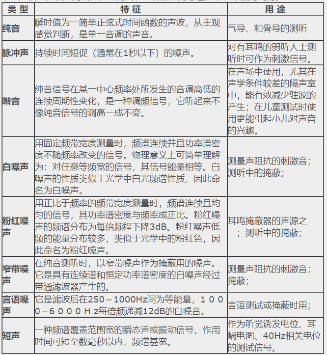 1. 描述聲波的常見物理量</p><p> 1)頻率:單位時間內物體振動的次數(次/秒),用Hz表示;</p><p> 2)強度和振幅:振幅是描述物體振動時傳遞能量的大小,單位是分貝dB;</p><p> 3)分貝:人耳的聽聲范圍太大,引起聽閾的最小聲強與引起痛覺的最小聲強相差近100萬倍,不易計數,因此以某一絕對聲強為基準(20μPa),將聲強的絕對值轉換為與該基準聲強的比值(聲強的級),再取以10為底的對數,最終計數單位變成了貝爾(Bell),為了更細的分級,現在普遍采用1/10B,即分貝(dB)為計數單位。</p><p> </p><center><img alt="" src="/upfiles/201906100126248309.png" width="423" height="154" /></center><p></p><p style="text-align: center;">音波示意圖</p><p style="text-align: left;"> 4)相位:指聲源相對于聽者的方向或位置,當頻率相同的聲音同時到達某點時,如果相位相同,其結果是使聲音顯得更響;當聲音一前一后分別到達時,相位出現部分抵消,其結果是使聲音顯得更輕,相位是確定聲源位置的依據;</p><p> 5)聲壓級(SPL):是用對數級的辦法來表示聲壓的相對大小,單位是dB SPL。計算公式為Lp(SPL)=20lg(P/P0),P0為基準聲壓,在空氣中取人耳1000Hz處能聽到的最小聲壓20μPa。</p><p> 2. 聽力學中常用的聲音信號</p><p> 下列聲信號在聽力測試、聲場測試、助聽器檢測等過程中經常被用到的。</p><p> </p><center><img alt="" src="/upfiles/201906100126317113.png" width="554" height="600" /></center><p></p><p> 更多詳情請登錄聽覺有道助聽器m.chisha.net.cn</p>" />