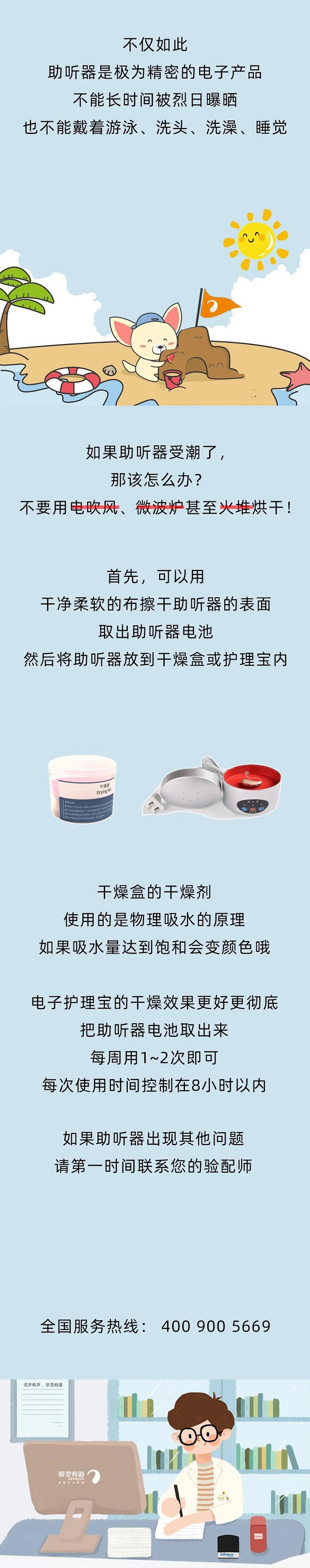 助聽器受潮了,聲音時有時無,怎么處理?