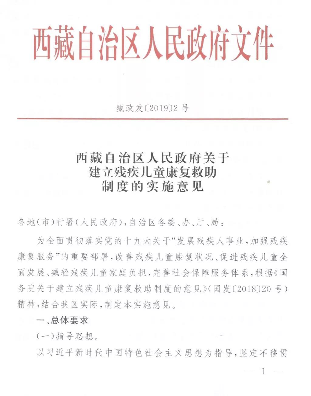 西藏自治區人民政府關于建立殘疾兒童康復救助制度的實施方案