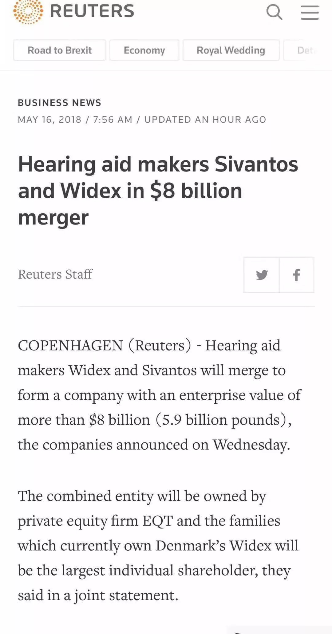 據(jù)稱,這是一個平等的“戰(zhàn)略合并”。新公司方宣布,將加速聽力產(chǎn)品技術(shù)創(chuàng)新,為市場打造個性化解決方案,利用數(shù)字平臺重新定義現(xiàn)有用戶和數(shù)百萬潛在聽障者所提供的專業(yè)服務。
