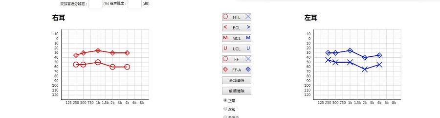 2、孩子目前右耳是重度聽損,左耳中度聽損,如果沒有做耳蝸的打算,選配助聽器必須雙耳驗配(告知雙耳聆聽的必要性),功率選稍大一個型號,以備后期聽力范圍波動時有調試的空間。