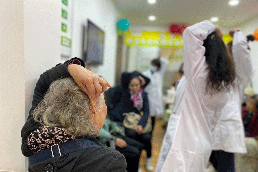 驗配師們和用戶一起做耳保健操,是每逢店慶和活動必須保留的一個重要環節。這次由蒲老師和王老師帶領大家一起來做。