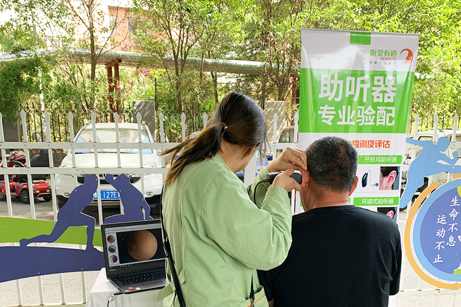 活動現場,聽覺有道的驗配師為大家解答聽力問題,提供外耳道檢查、聽力篩查、測量血壓、上門檢測等服務,并教大家做耳保健操,指導合理用藥,預防藥物性耳聾……