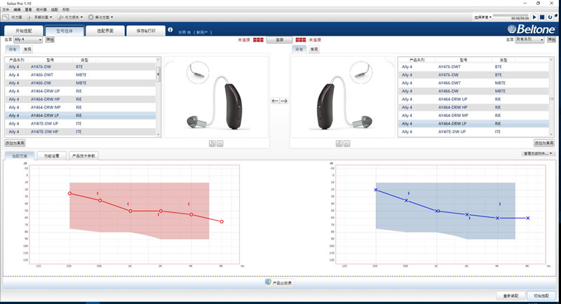 由驗配師將你的聽力測試結果圖輸入電腦,通過處方公式選擇、補償參數選擇、軟件程序設定、個性化調試選出適合你的助聽器并調試;將調好的助聽器進行助聽器配戴效果試聽