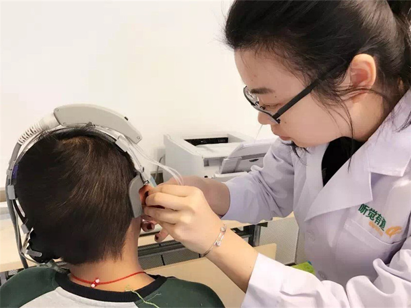 由驗配師將定制的助聽器為你佩戴上,并通過電腦導入之前初選的數據設置,體驗配戴效果,進行再次的微調。真耳測試能最好的反映出小孩配戴助聽器的效果